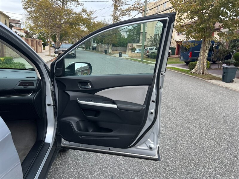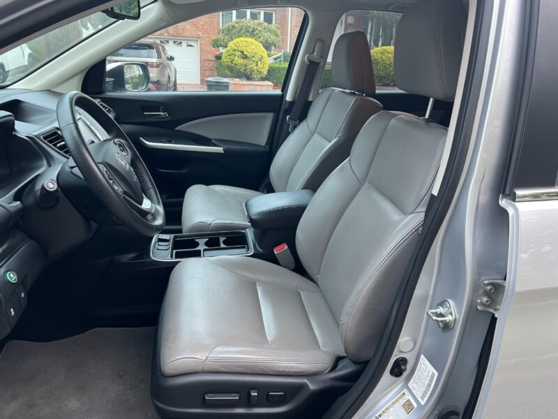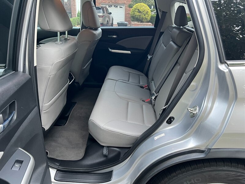 Introducing the stunning 2015 Honda CR-V EX-L AWD in the elegant Alabaster Silver Metallic exterior with a luxurious Gray leather interior. This beauty is powered by a 2.4L I4 engine, delivering a peppy 185hp and 181ft. lbs. of torque for a smooth driving experience.